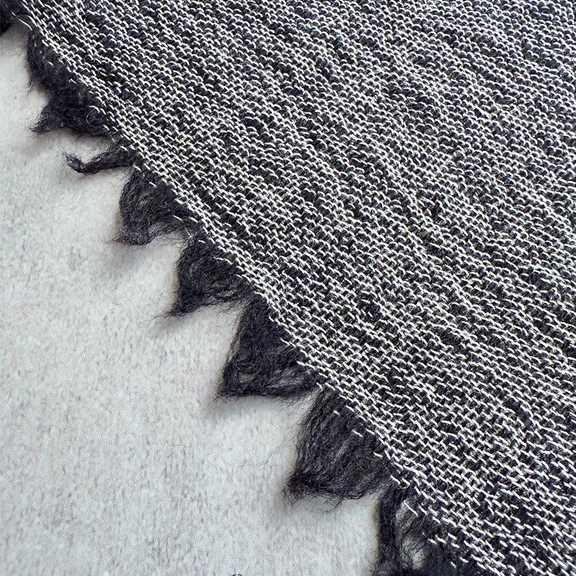 本来、生地の両端に当たる耳は切り落としますが、耳を残したまま縮絨することでウール素材同士が絡まりあい、独特のフリンジ感を出しています。
