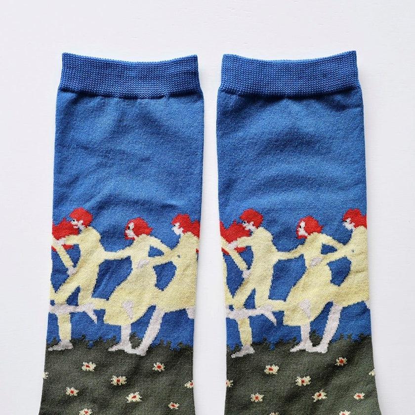 色とりどりの絵柄が美しい、創業100年の靴下メーカーが手がけるソックス。3つの絵柄にそれぞれ色違いのデザインが作られていて選ぶのが楽しくなる逸品です。どのデザインもサイズは22〜24cm。ご自身のファッションのポイントとして取り入れるのはもちろん、母の日のプレゼントやちょっとしたギフトにもおすすめです。