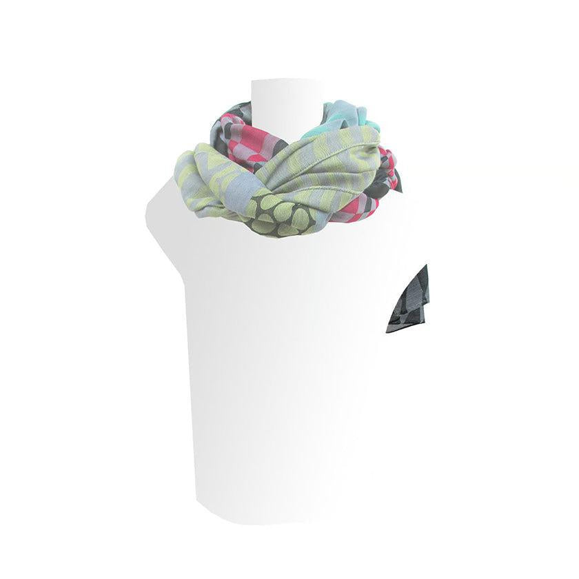 「レイヤー」の名の通り、2枚のストールが重ねられたデザイン。表面と裏面で異なる柄を一度に織れる技法を用いて作られているため、それぞれの面のカラーが層のように美しく表現されています。なめらかに織り上げられた生地は肌触りもよく、薄手ながらボリュームのあるスタイリングを楽しむことができるアイテムです。