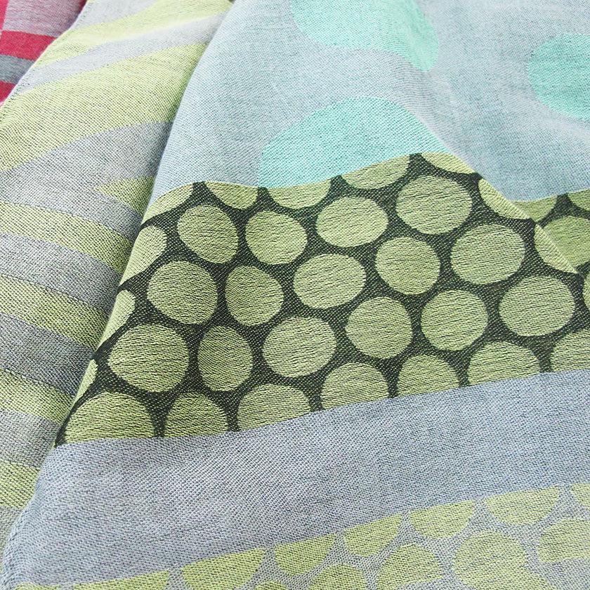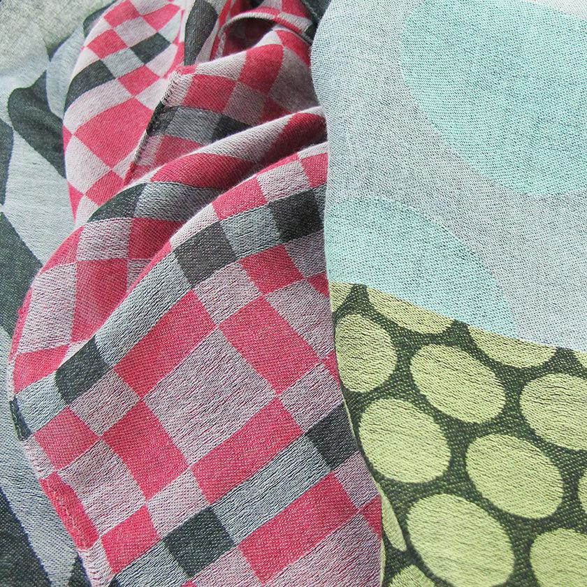 ガーゼのような二重構造で、表面と裏面で異なる柄を一度に織り上げるレイヤー織りで作りました。