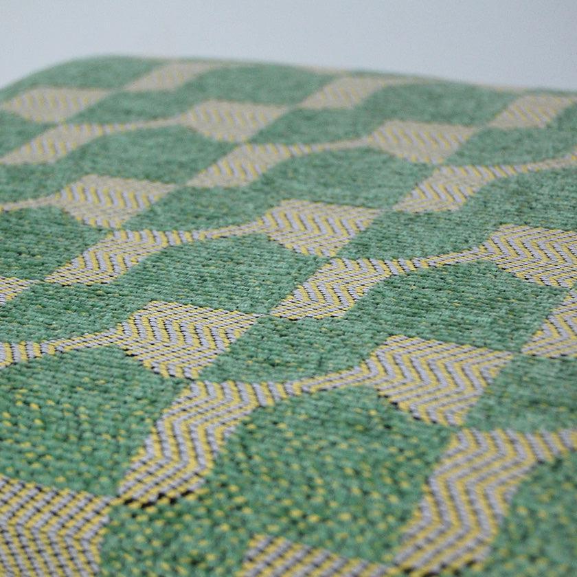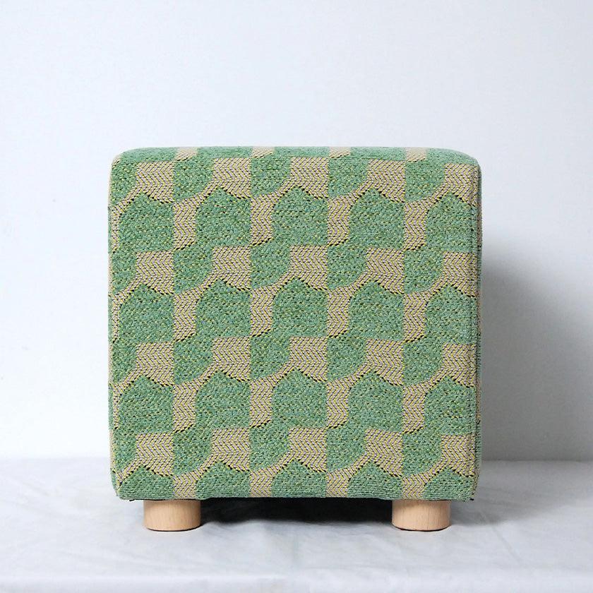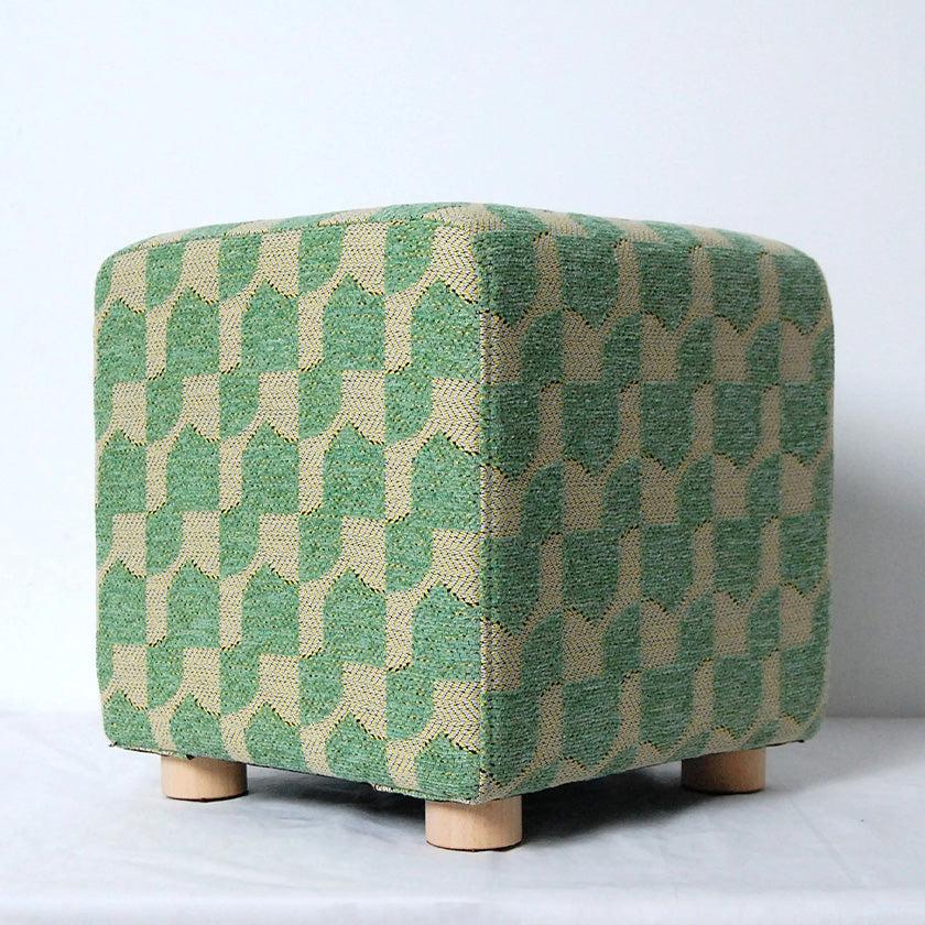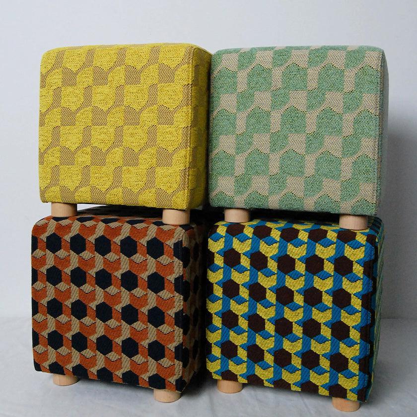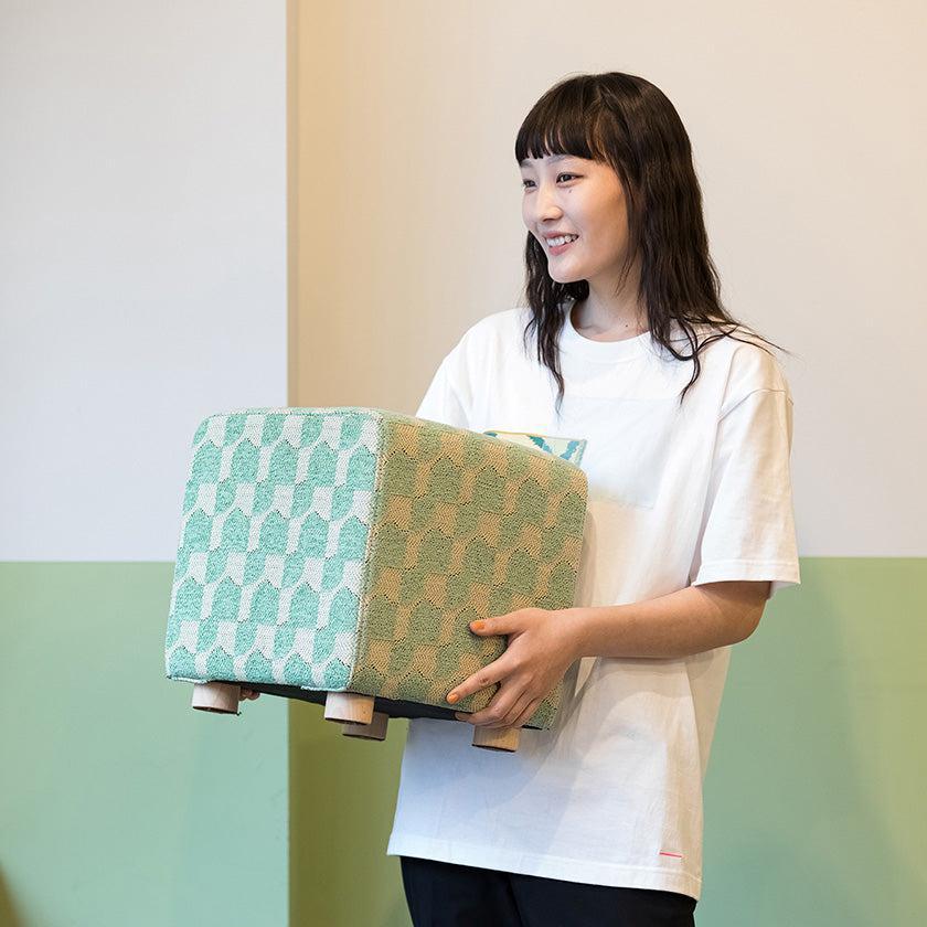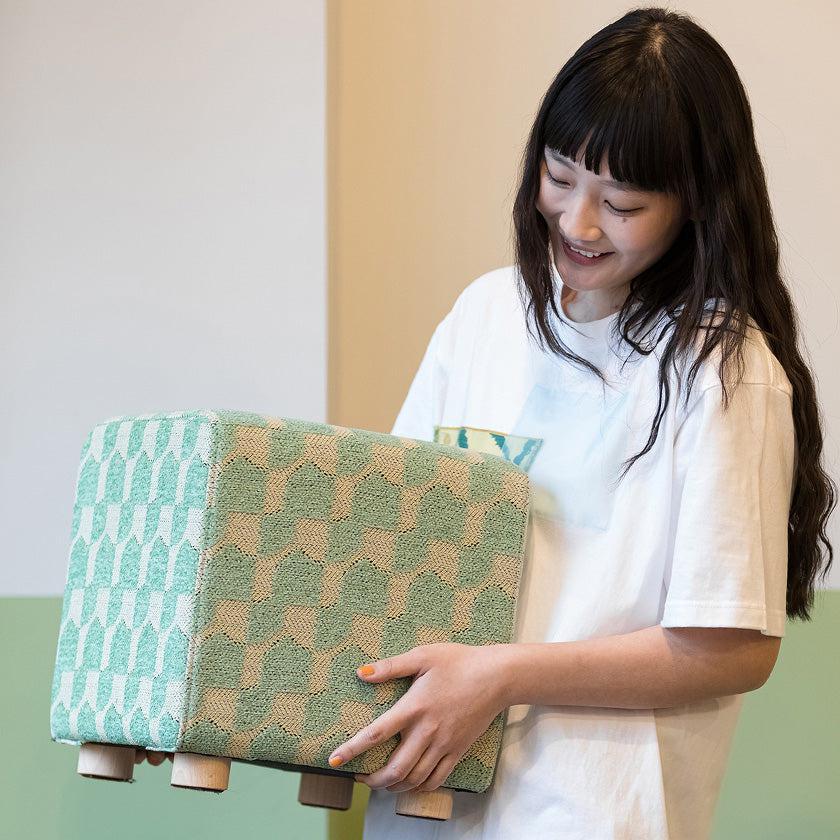 正方形の面が合わさった、サイコロのようにころんとした形状のスツール。播州織の技術を用いて、立体感のあるジャガード生地で仕上げられています。どのデザイン・カラーもあたたかみを感じるおしゃれなカラーリングで、お家のなかを華やかに彩ってくれますよ。新居祝いや結婚祝いのほか、お子さま用の椅子としてもおすすめです。