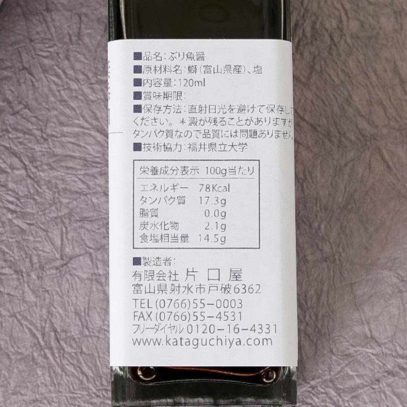 富山湾の冬の王者「氷見寒ブリ」の内臓を100%使用した、片口屋自慢の魚醤です。
