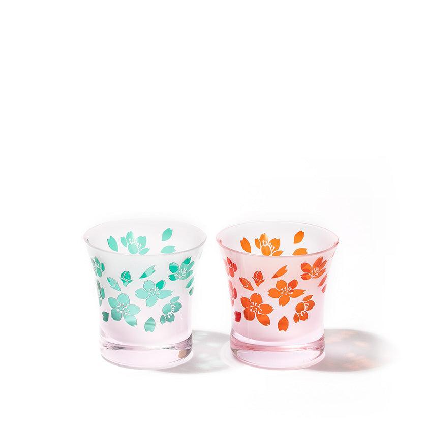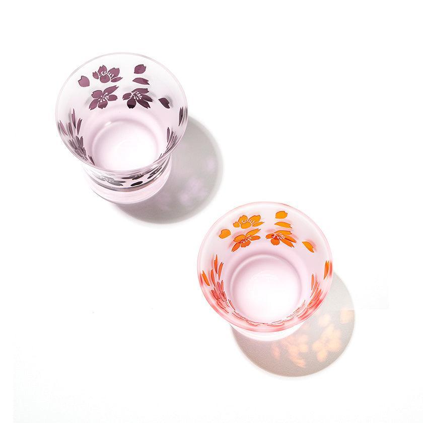 二層の色被せガラスを一つ一つ手吹きにて作り、その器に彫刻を手作業で施し、二色のコントラストで図柄を表現しています。ピンク色が華やかな桜のシリーズ。 優しい色味と使い易さを大切にした形の器は性別・年齢を問わずお楽しみいただけます。