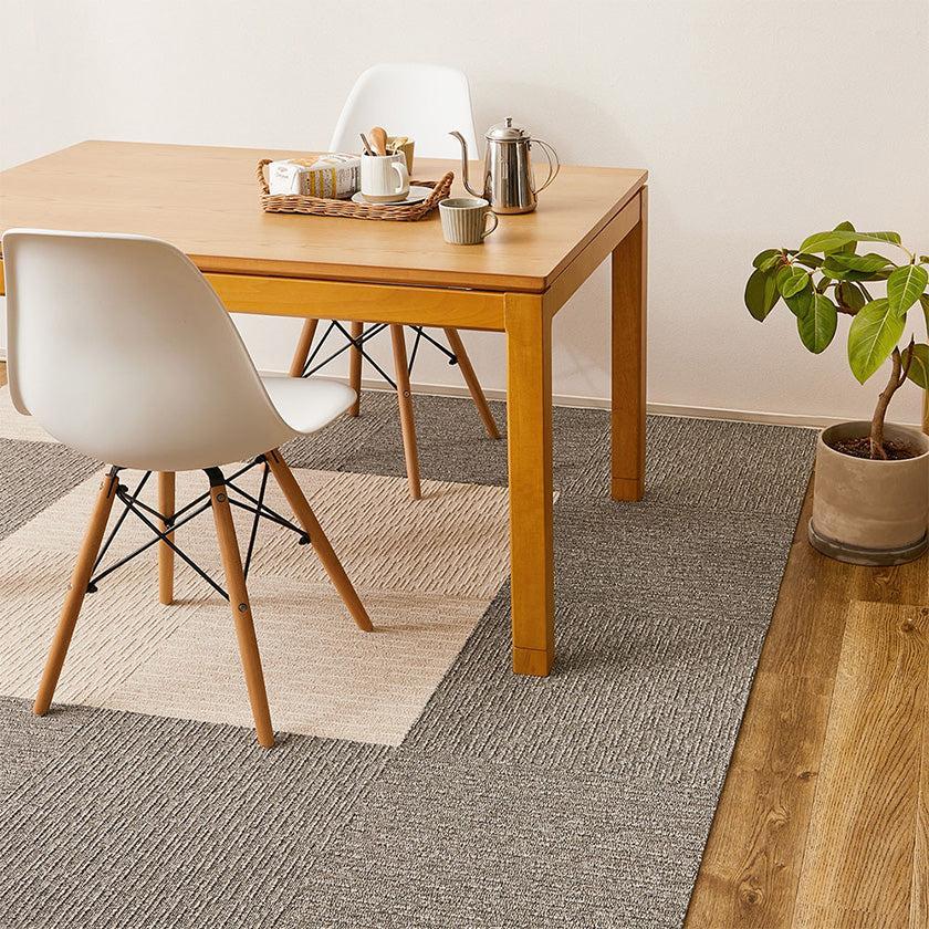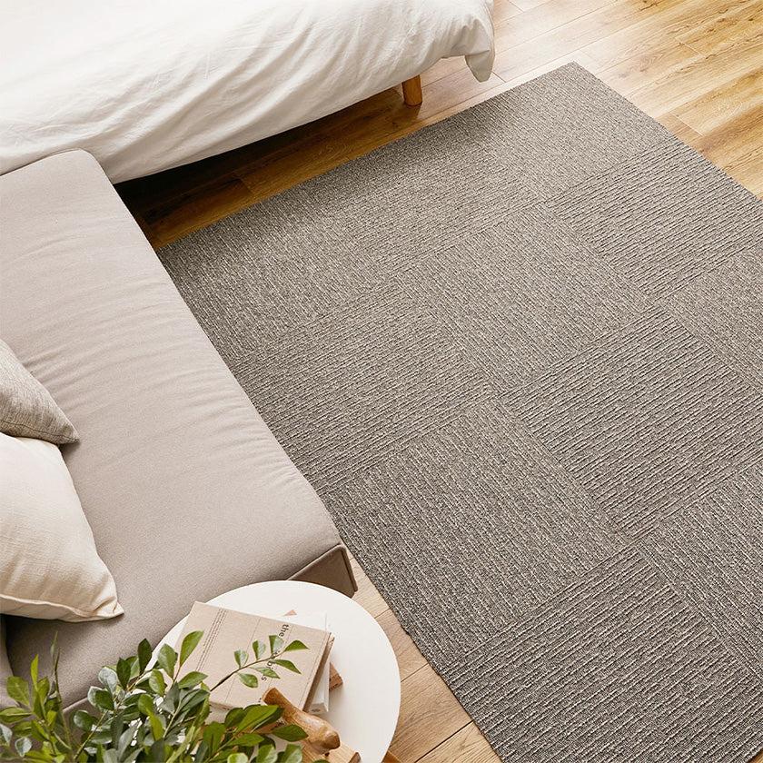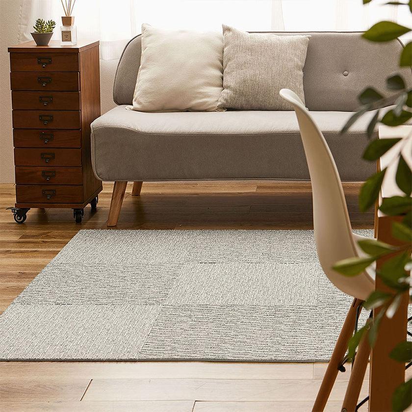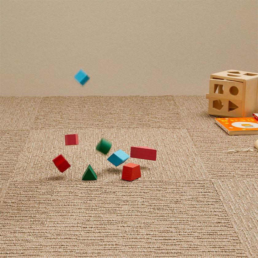 正方形のマットを組み合わせたタイルカーペットは、汚れた部分だけ取り外して洗うことができるのも便利です。