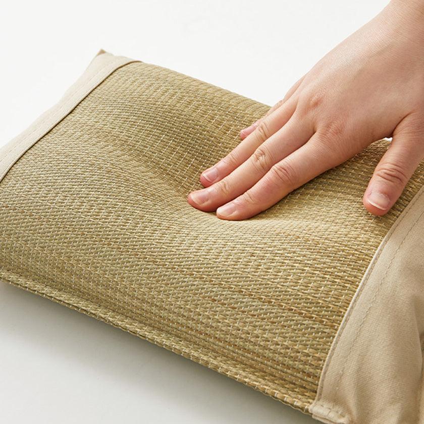 「倉敷帆布」は地元倉敷市周辺で18世紀からつくられてきた素材でもあり、い草の枕の品質や魅力をさらに引き立てます。