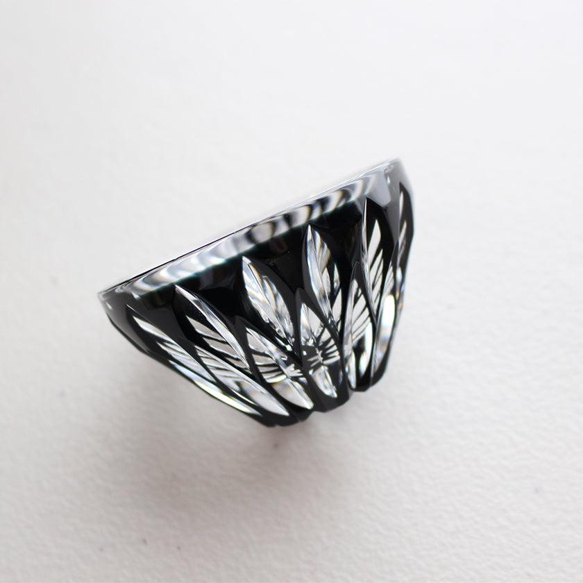 このグラスに使われているのは、シックなブラックカラー。この盃を手がけている薩摩びーどろ工芸が、2006年に業界で初めて黒色の発色に成功しました。