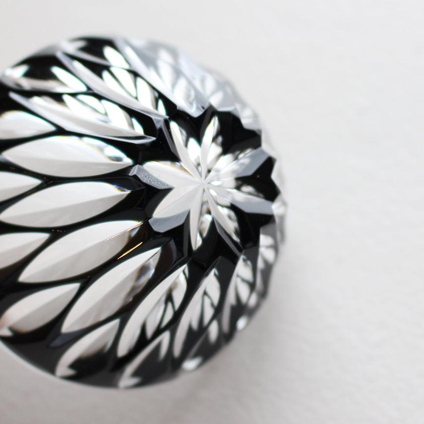 伏せた状態は、鹿児島のシンボルである桜島をモチーフにしており、やさしい曲線を描く形状も上品。グラスの底まで贅沢に施されたカッティングで、見とれるほどに美しいですね。