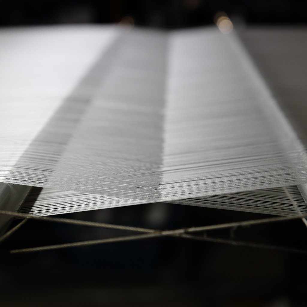手にとって感じるのは、シルク100%の生地の美しさ。内側から溢れ出るような独特の光沢が、上品な華やかさを演出します。その美しさの秘訣は、生地の密度にあります。