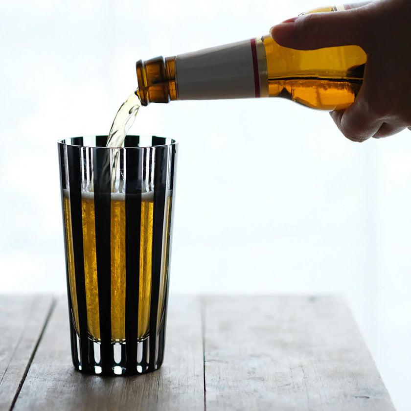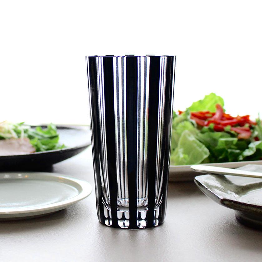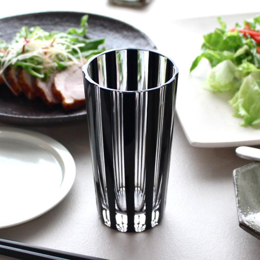黒とガラスの透明感が奏でるはっきりとした力強さは、食卓にプラスするだけで目を惹く存在に。食事と合わせて晩酌を楽しみたい時や、ゆったりとお酒を楽しみたいリラックスタイムなど、どんな時にも特別な気分にさせてくれるグラスです。