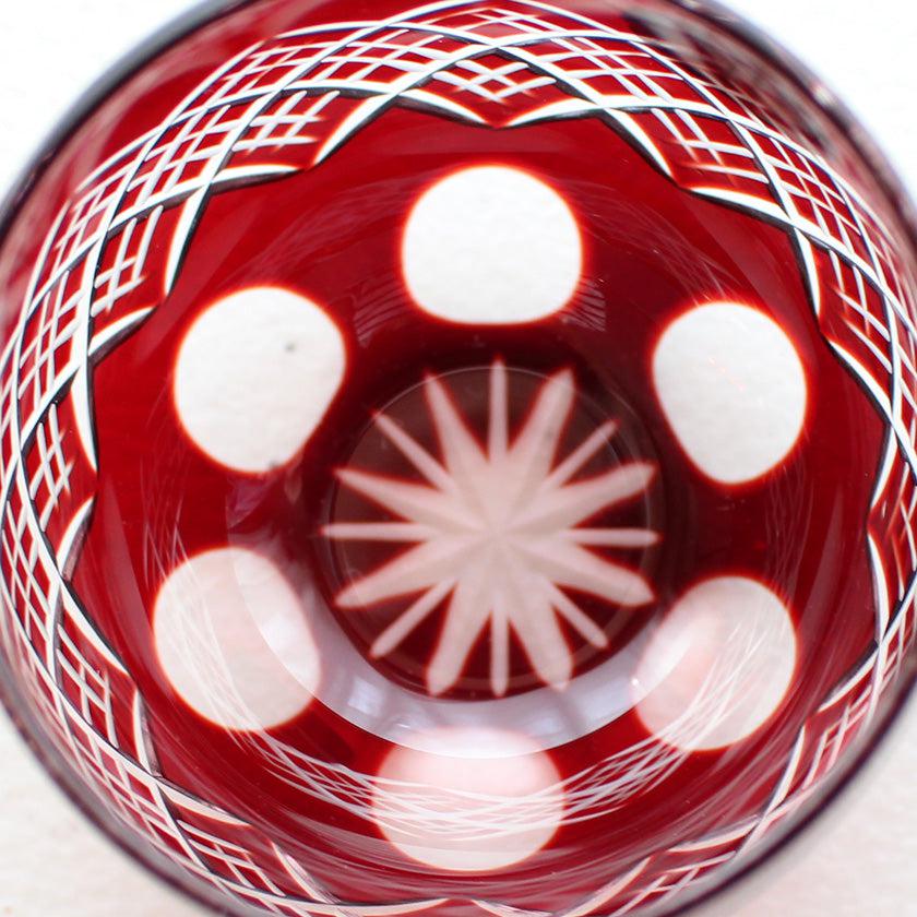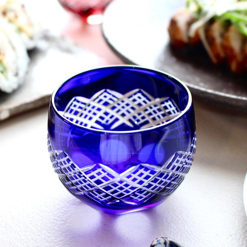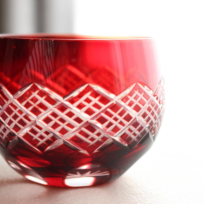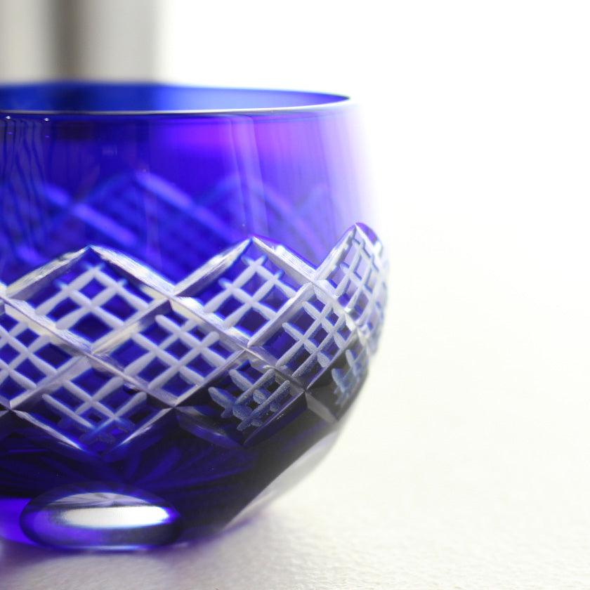 同じ直線でも、カットの深さによって表される線の表情が異なるのが奥深いところ。また直線が無数に交差するデザインはスタイリッシュな印象。あわせて、底近くの丸いカットがやさしい陰影を映し出してくれますよ。切子のシンプルな美しさを堪能したい人におすすめのぐいのみです。
