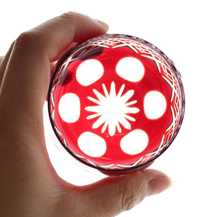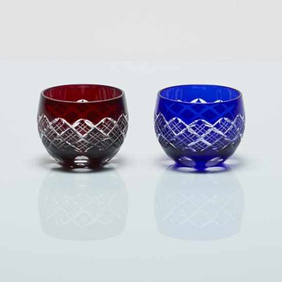 緩やかなカーブを描くころんと丸い形状が、手によく馴染む切子のぐい呑み。容量約100mlと、おちょこよりもたっぷりとお酒が楽しめるサイズ感です。おつまみなどの一品を盛り付けるなど、食器としても使えるのが嬉しいですね。赤と青のペア商品のため、結婚祝いや新築祝いなどこれから新しい生活を迎えるご夫婦へのギフトや、お世話になった目上の方への贈り物にもおすすめです。