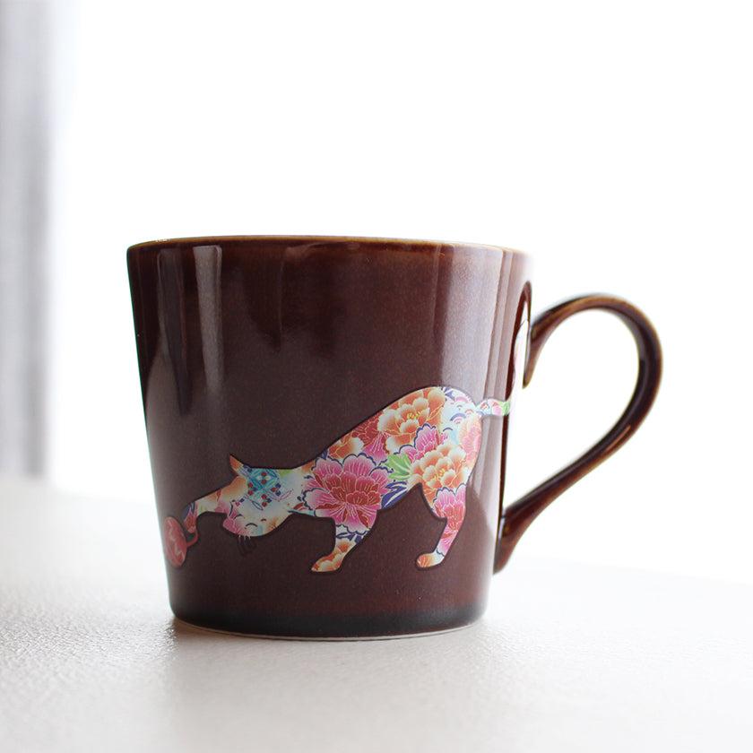 「温感シリーズ」と名付けられている商品のなかのひとつで、45℃以上の飲み物を注ぐことでマグカップの猫の模様が変化します。特殊な絵の具を調合し、さらに特殊な窯を使って焼き上げており、他に類を見ないオリジナリティあふれる商品です。