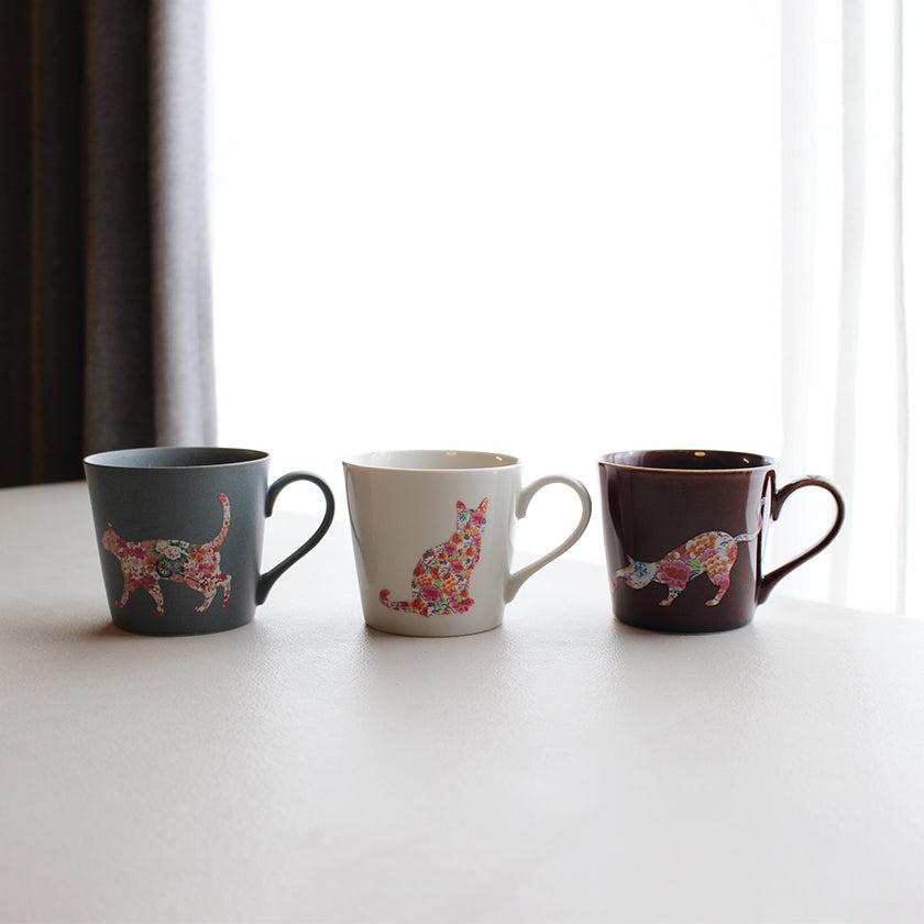45℃以上のあたたかい飲み物を注ぐと猫の絵柄が鮮やかなカラーに変化するマグカップ。シンプルな形状のマグカップですが、猫の絵柄をよく見ると花をモチーフにした和柄なのがわかります。日本で作られたマグカップらしい、粋なデザインを楽しむことができますよ。色違いの3つセットなので家族で使うほか、猫好きなご家庭へのギフトにもおすすめです。