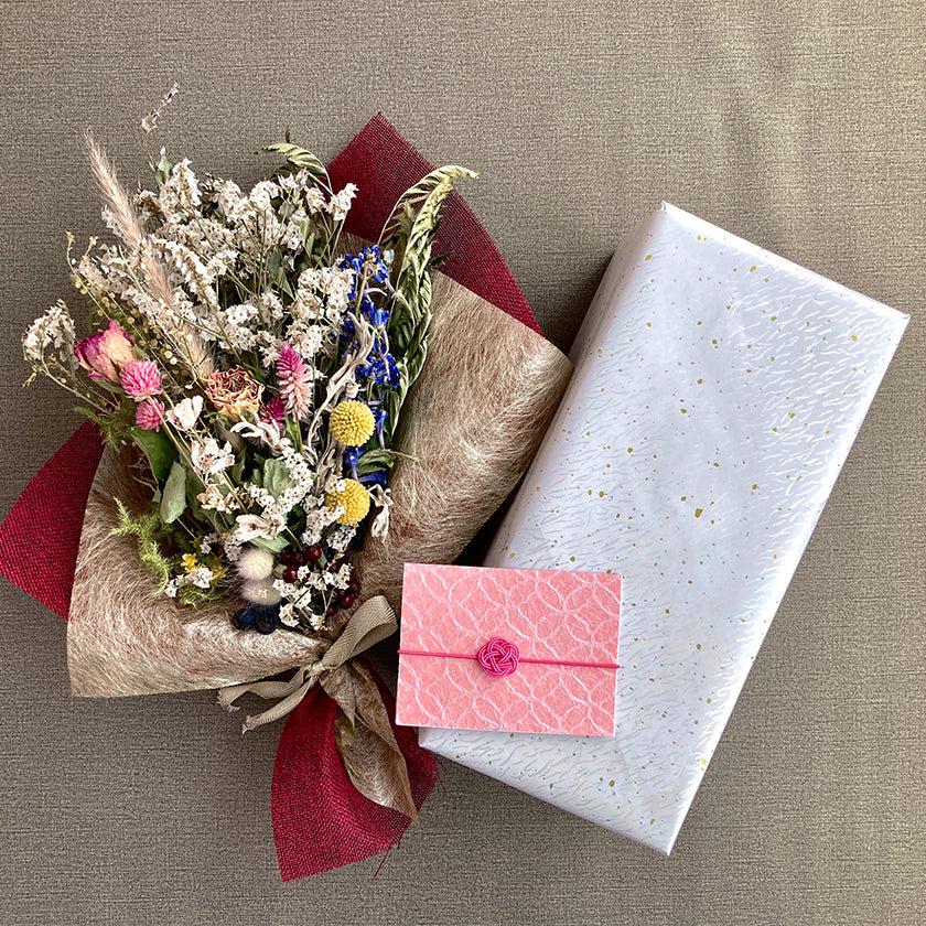BECOSのラッピングサービスは、和紙や水引、風呂敷など日本ならではの素材を使った和モダンなデザインから選ぶことができます。また、直接手渡しできない時には、メッセージカードに伝えたい文章を手書きで代筆するというサービスも。大切な方へのギフトは、ぜひ商品とともに想いや気持ちも一緒に贈ってください。