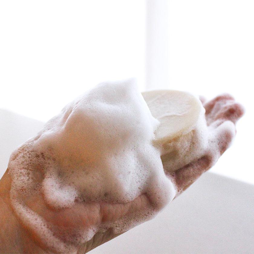 枠練り製法の石鹸は、時に泡立ちにくいことがデメリットとして挙げられます。しかしこの石鹸は、泡だてても泡だてなくてもお好みの使用感で使うことができます。泡立てるのが面倒だったり、泡のふわふわ感だと頼りないという人は、濡れた手のひらで石鹸を軽く転がしそのままマッサージするように使うのがおすすめ。
