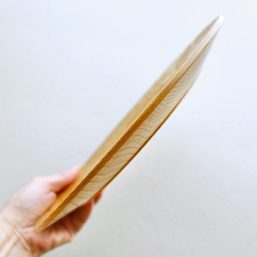 お皿の直径は約25.5cm、リムの内側は直径約17.5cm。高さは約2cmあります。重さは約150gと、重くなりがちな大皿も木製ならではの軽さ。お皿を洗ったり拭きあげたりと、片付けも苦になりません。