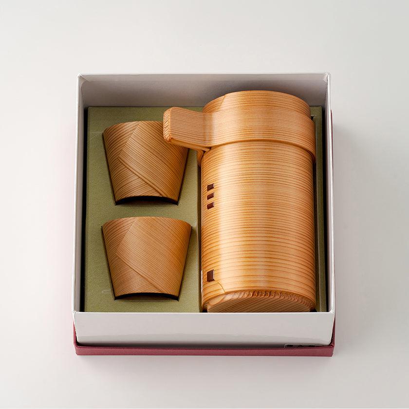 いつもの晩酌タイムを特別なひとときにしてくれる、曲げわっぱの酒器セット。ぐいのみは、外側のみウレタン塗装がされていて、内側は白木のまま。お酒が入ったぐいのみが口に触れた瞬間、ふわりと杉の香りを感じることができます。おもてなしの際はもちろん、家族やおひとり様の晩酌タイムにも活躍しますよ。