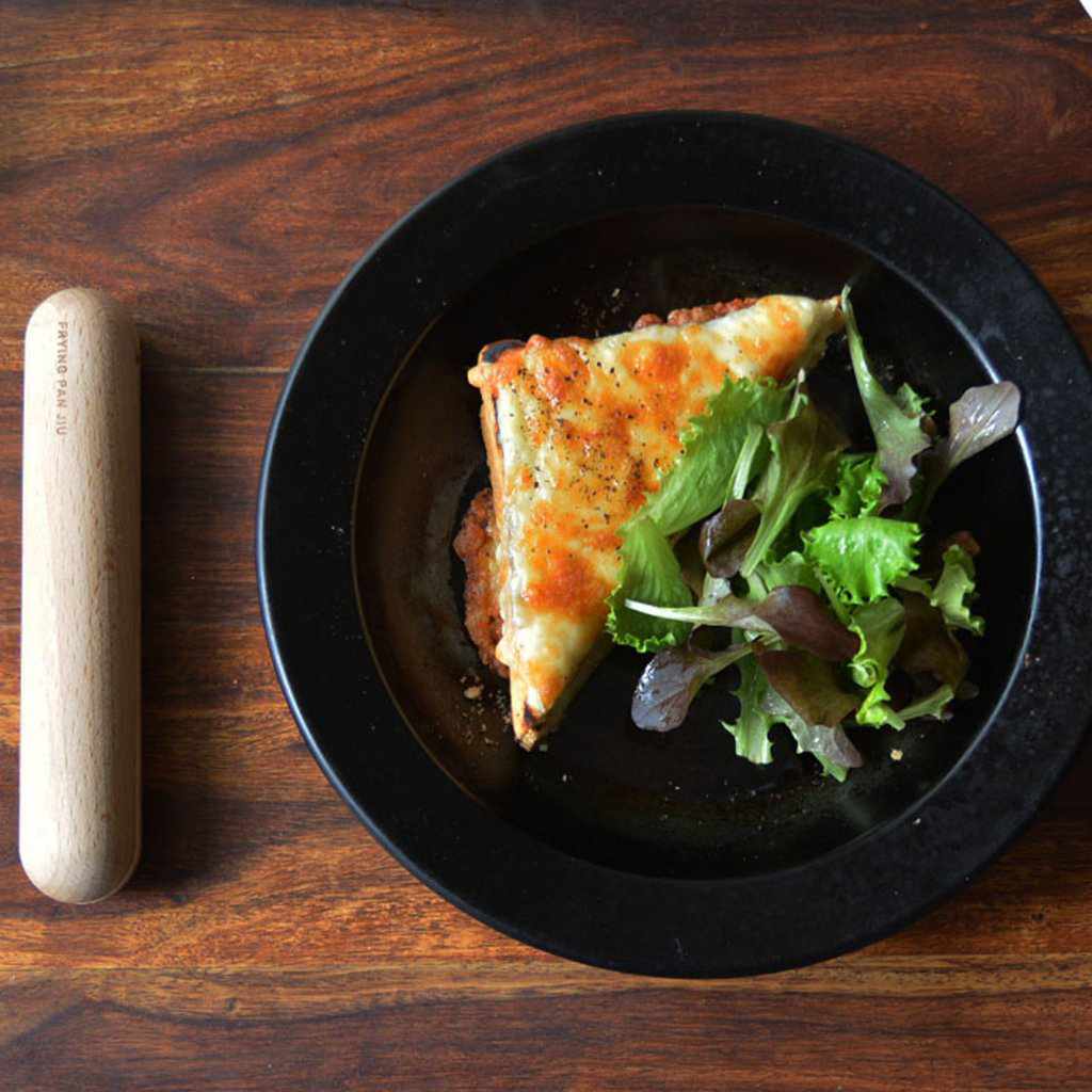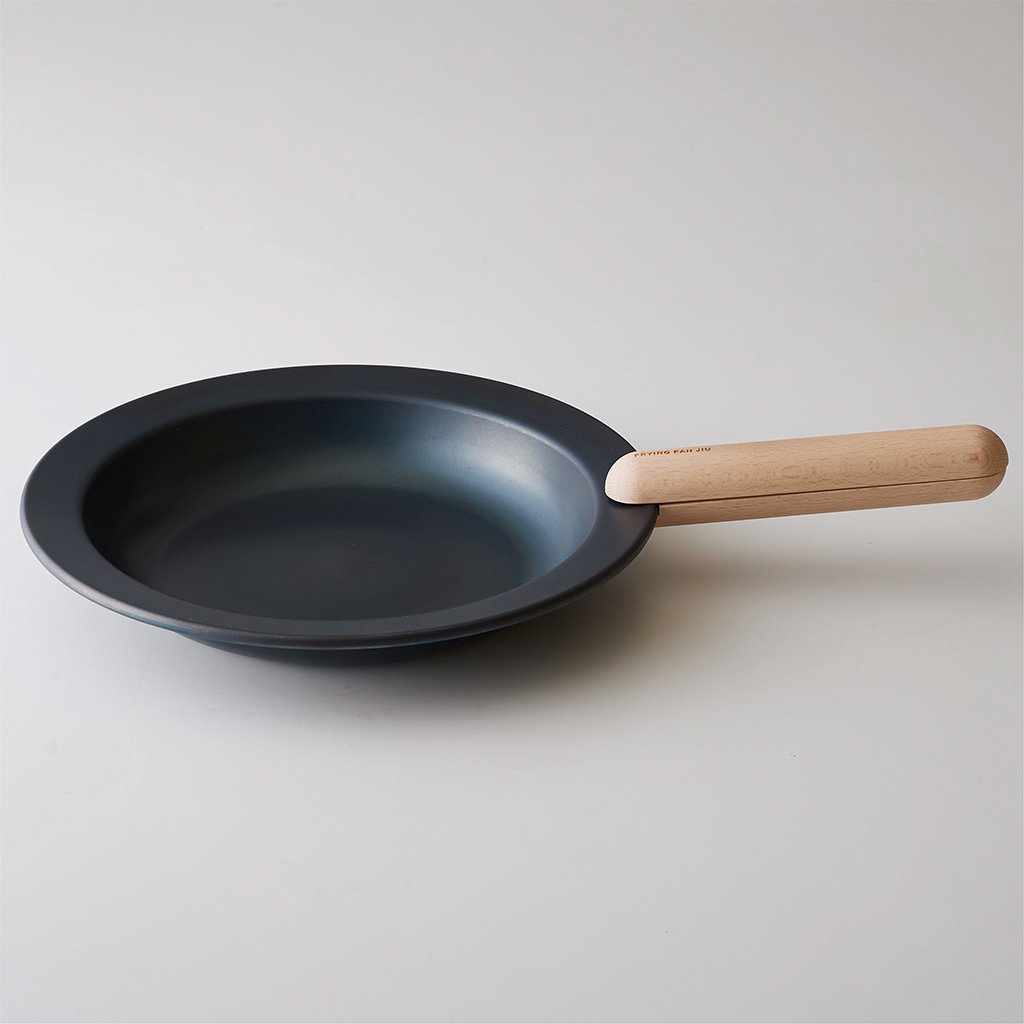大阪府八尾市にある小さな町工場で、職人が1点1点手作りした鉄のフライパン、「JIU(ジュウ)」。着脱式のハンドルとお皿のような本体によって、「つくる」と「食べる」をひとつにした機能美が魅力です。