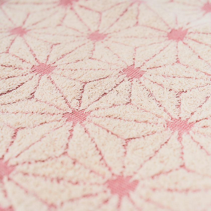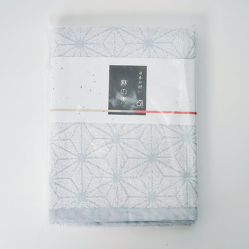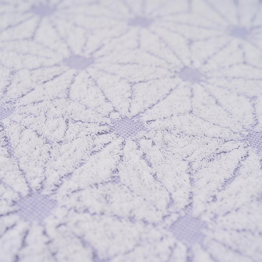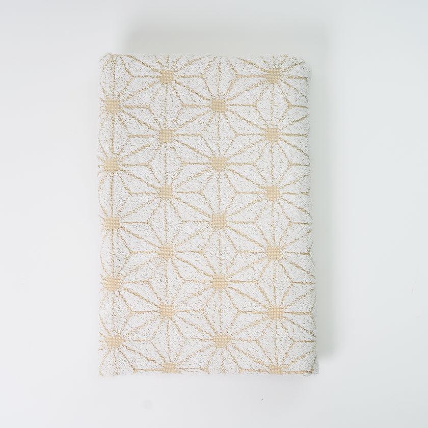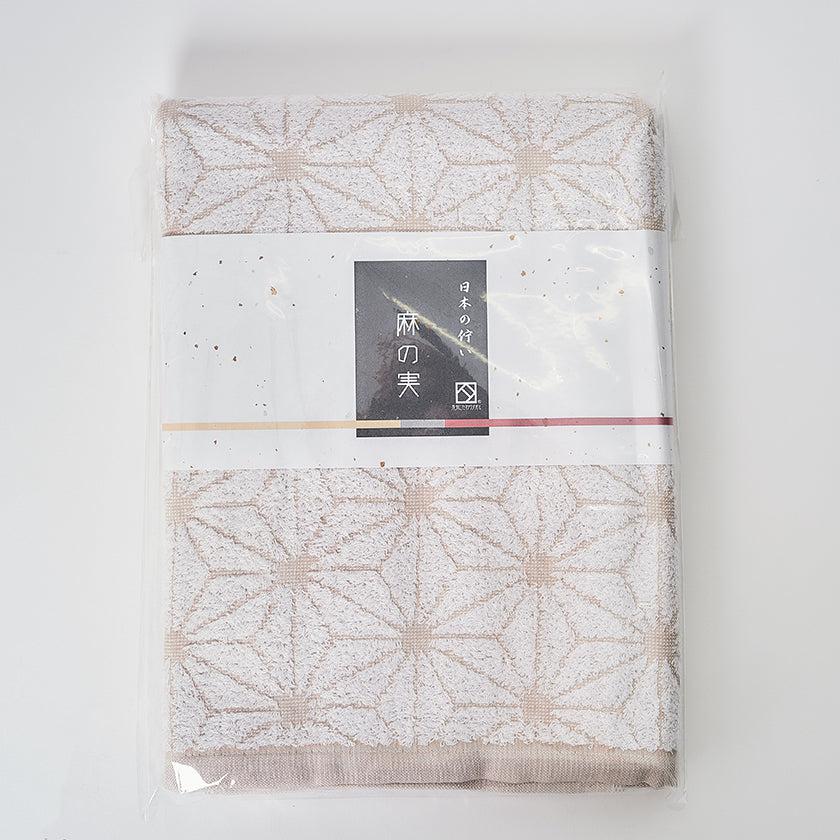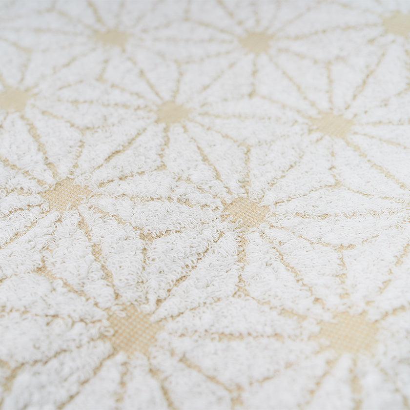 「日本の佇い」シリーズのタオルは、どこか懐かしさを感じさせるデザインが魅力。このタオルは、日本の伝統的な模様「麻の実」をモチーフにしています。六角形を基礎とした規則正しい麻の実模様は、幾何学模様のようにも見え、クラシックでありながらモダンな印象を併せ持っています。さらに、表と裏で異なる表情を楽しめるデザインもポイントです。