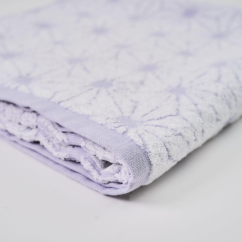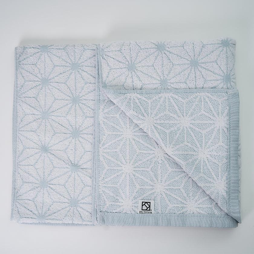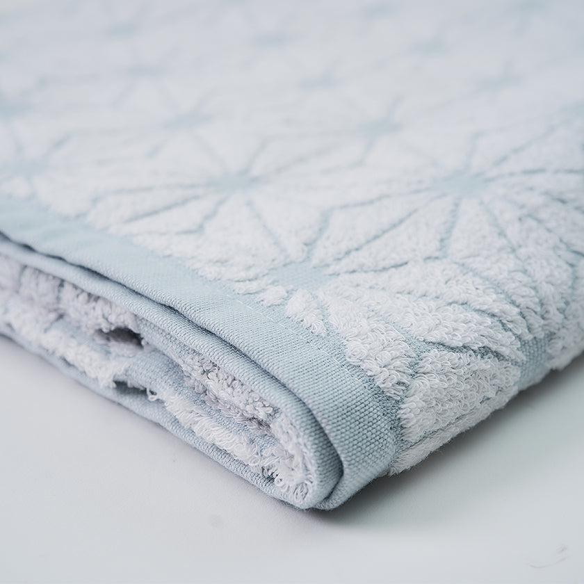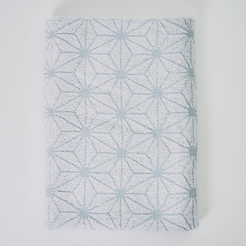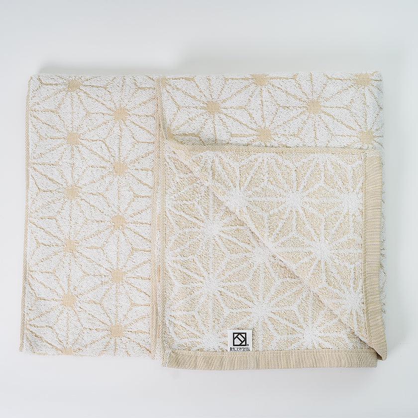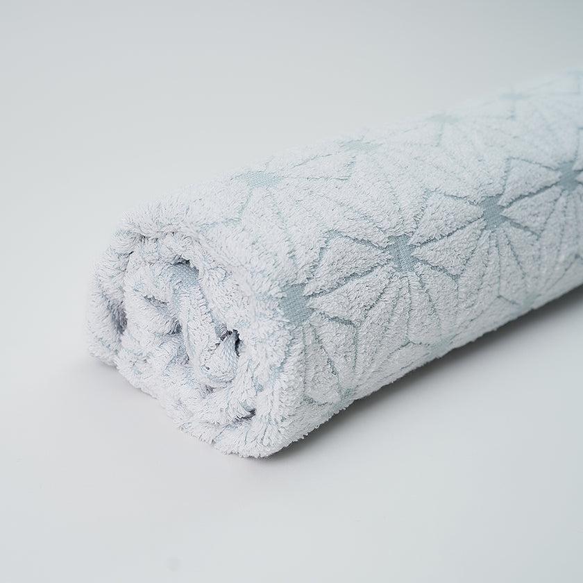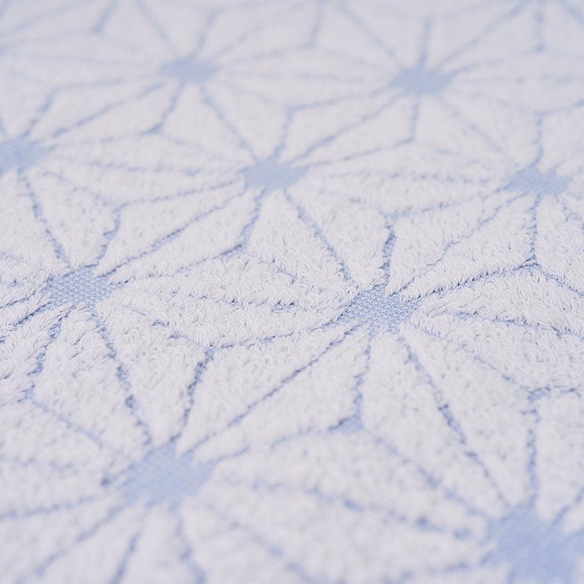 「日本の佇い」シリーズのタオルは、どこか懐かしさを感じさせるデザインが魅力。このタオルは、日本の伝統的な模様「麻の実」をモチーフにしています。六角形を基礎とした規則正しい麻の実模様は、幾何学模様のようにも見え、クラシックでありながらモダンな印象を併せ持っています。さらに、表と裏で異なる表情を楽しめるデザインもポイントです。