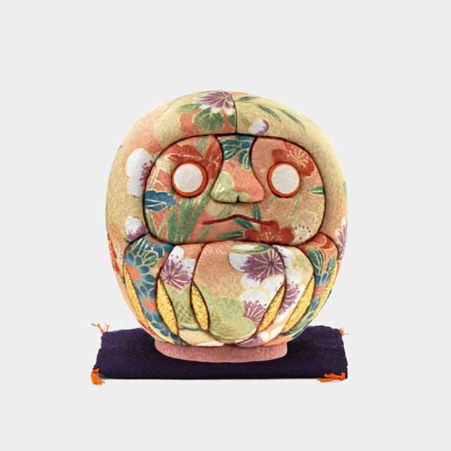 赤、白、紫などの鮮やかな花が咲き乱れている友禅をつかっただるまです。