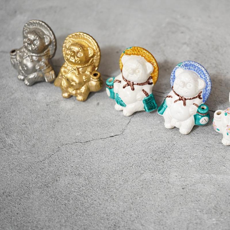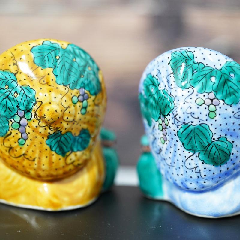 古九谷風の絵付けがカラフルなたぬきのオス・メスセットです。