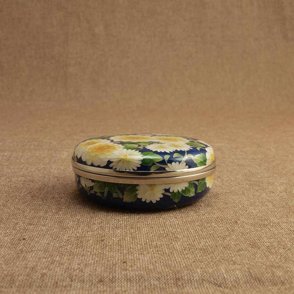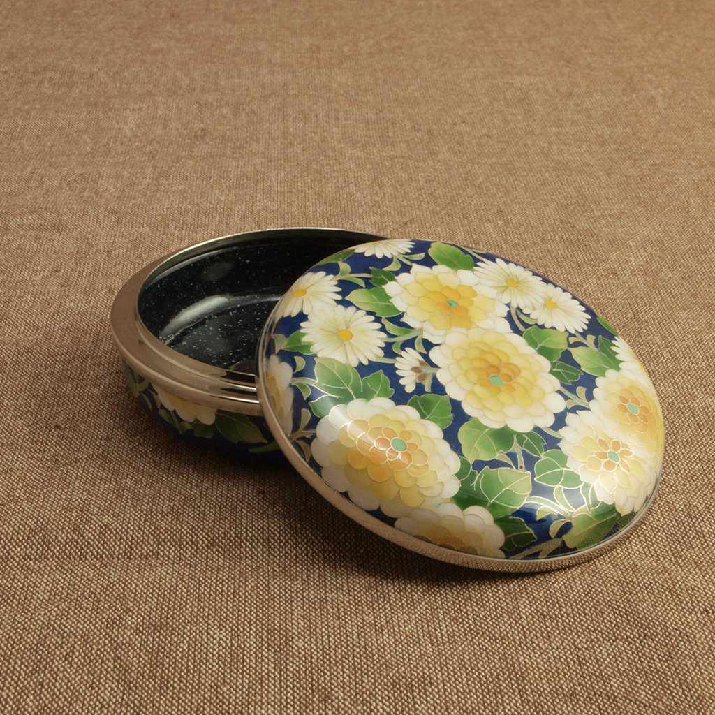 有線技法で細密な模様を全体にちりばめたデザインの香合です。