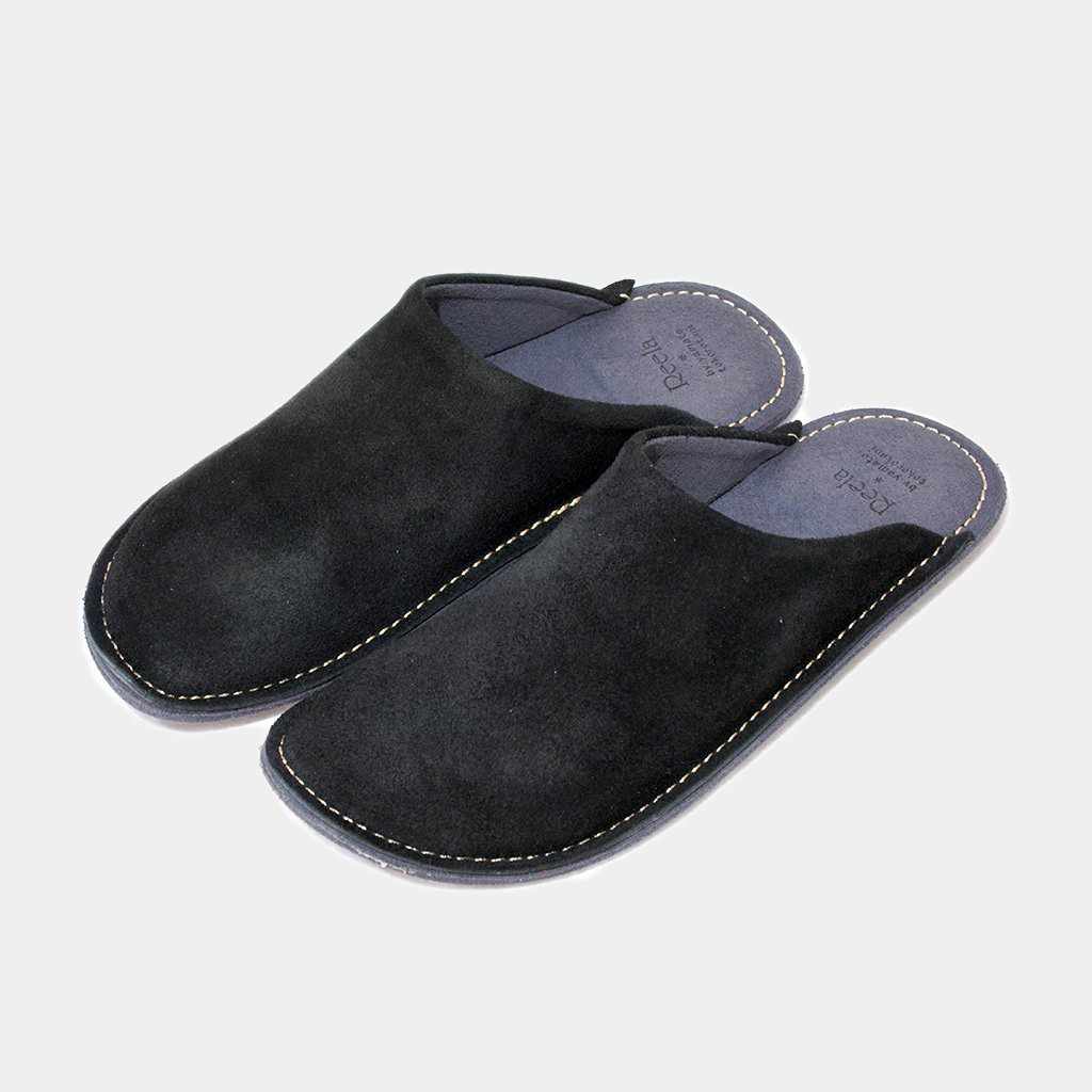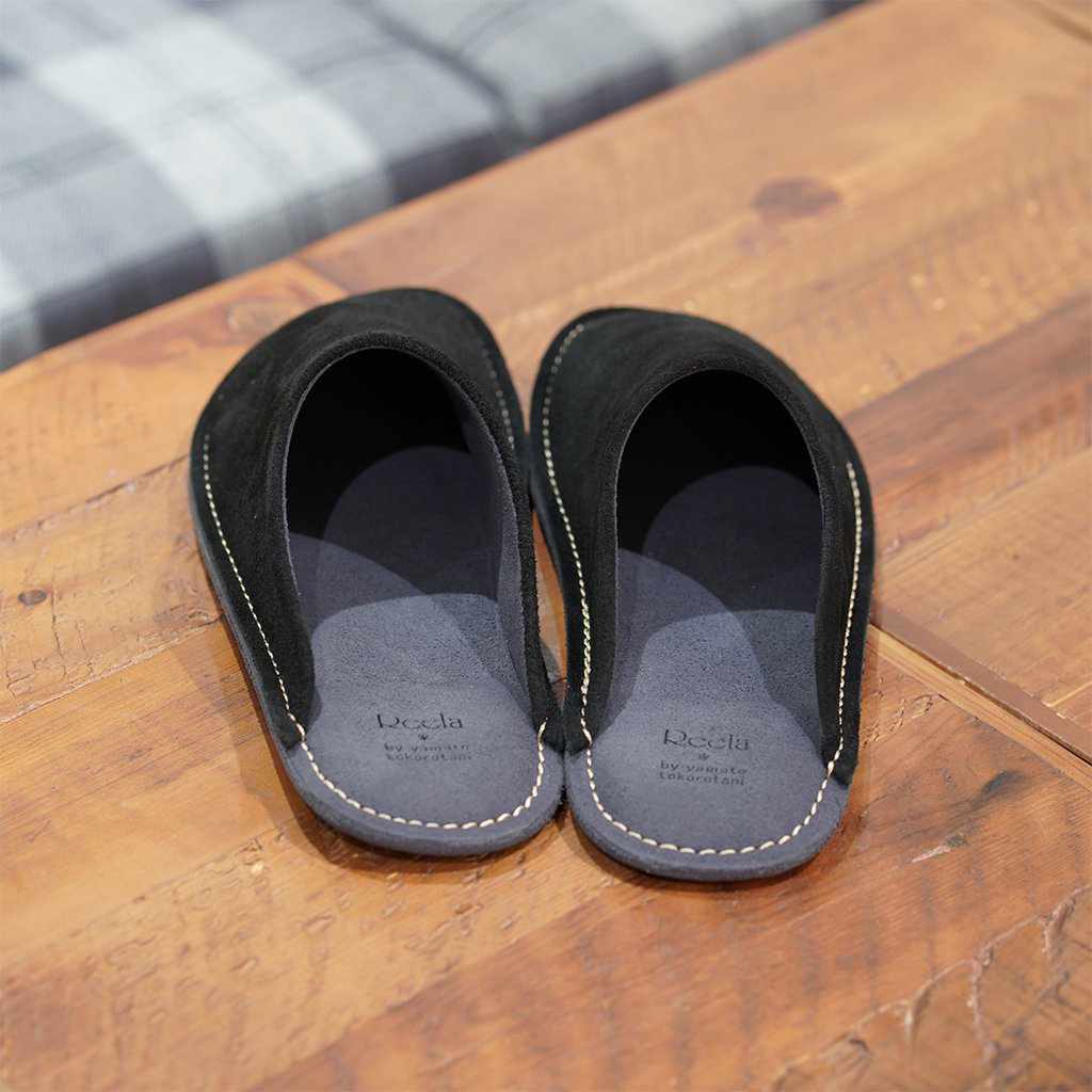 和歌山産のトコ革(天然皮革)の多彩な起毛がプレーンで柔らかな装いのルームサボ(スリッパ)です。