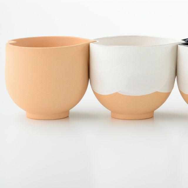 このボウルを一列に並べた時に綺麗に一連になるように片口の長さや角度を調整しています。