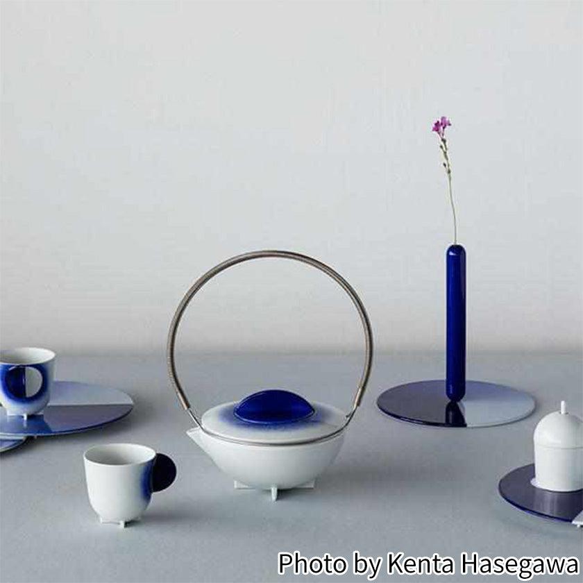 このティーセットは、有田焼きの特徴とも言える瑠璃地の色や、古くから伝わる吹き付けの技法から発想を得て生み出されました。