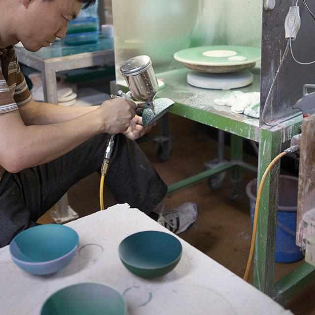 有田の磁器生産は現在も多くの手作業や細やかな注意を要する工程を含んでいます。