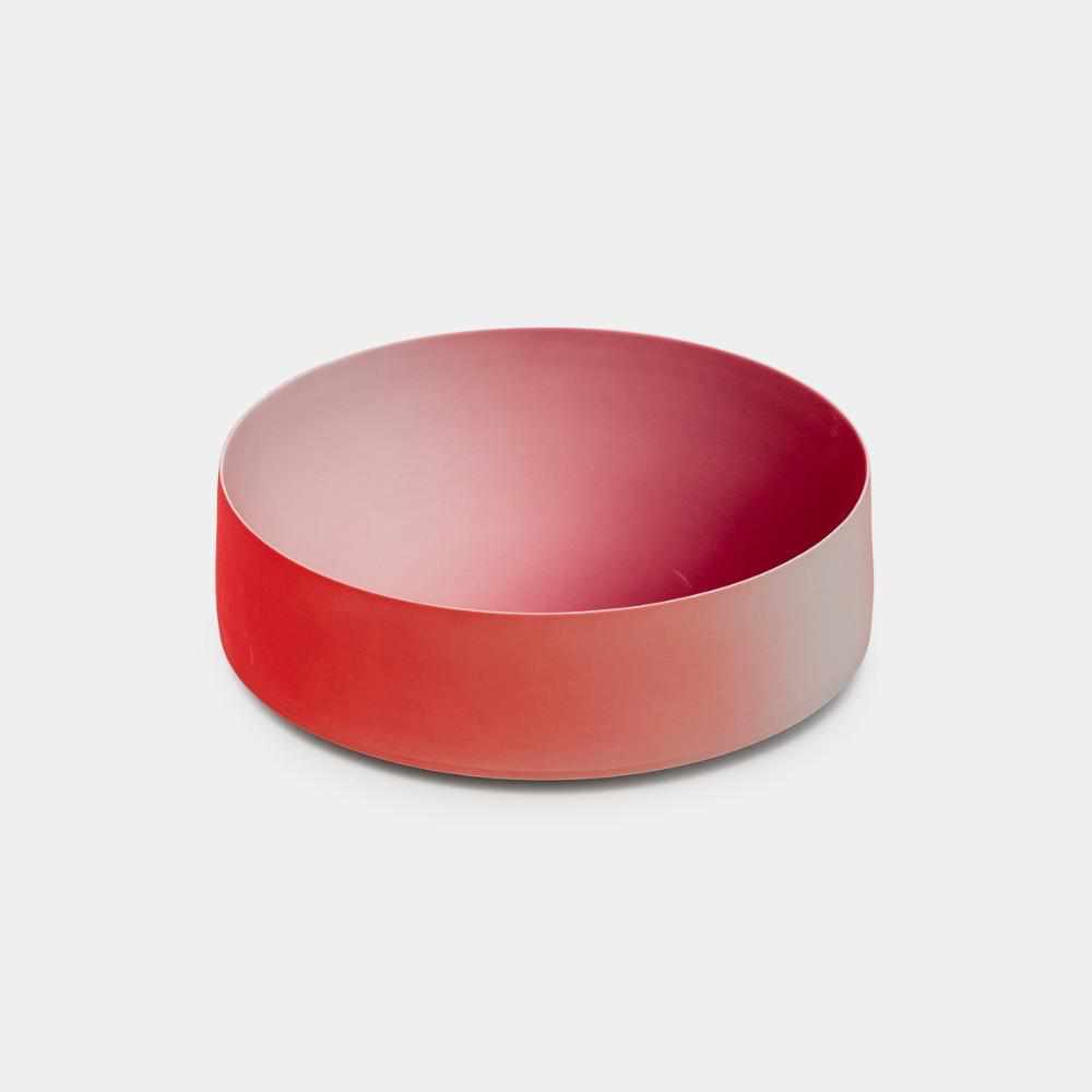 フラワーベースとボウルによるこの有田焼シリーズは、職人による幾何学的な形状と「吹付」と呼ばれる エアブラシで色付けする特別な技術を用いた、柔らかな色のグラデーションが特徴です。