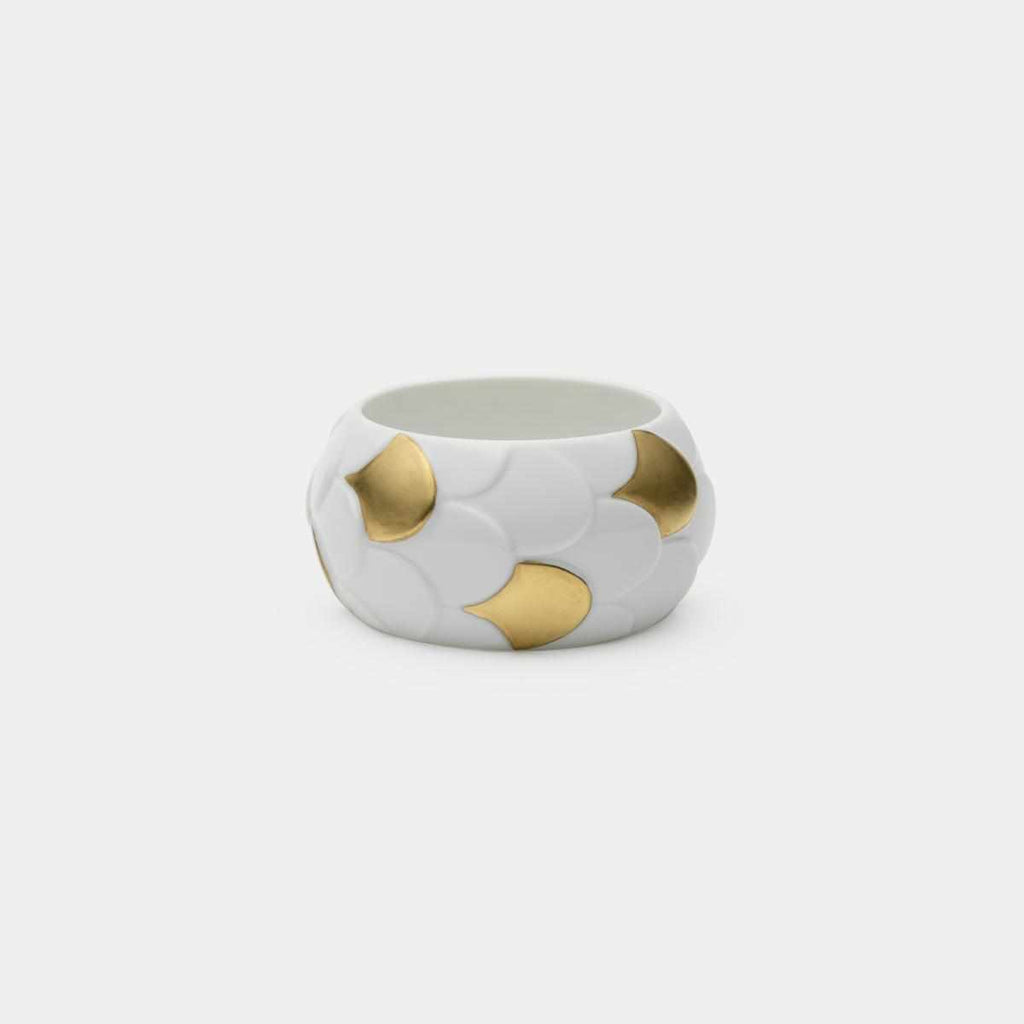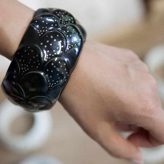 日本の伝統的な文様である鱗からインスピレーションを受けた、磁器のブレスレットです。