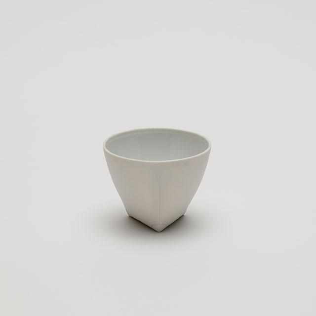 高台をなくすという斬新なデザインで、底面を三角形の点で支えて自立しています。