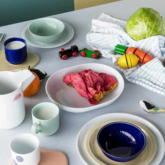 子どもにとっての大皿が、大人にはサイドプレートになるような、サイズと用途の関係に着目したデザインは、一つの使い方にこだわらずに、使い手が想像力を働かせることで、様々な機能に対応します。