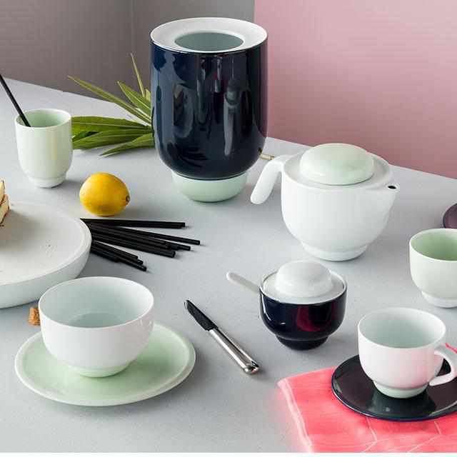 デルトゥアは、今回の有田焼コレクションのために、形とプロポーション、容量と扱い方における適切なバランスを探ろうと、アジアとヨーロッパの日々の生活で使われるカップやお皿の類型論を学びました。