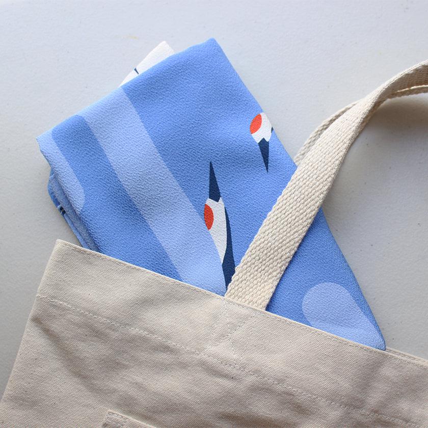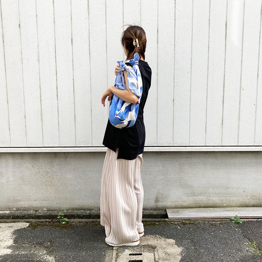 風呂敷の利点は、なんといっても畳めば小さくなってかさばらず、持ち歩きがしやすいという点。バックに入れておけば、さまざまなシーンで便利に使うことができます。