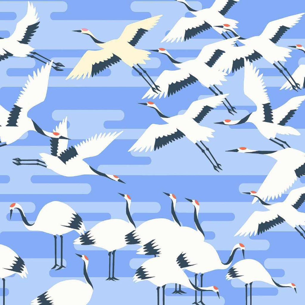 伝統的な霞紋と鶴が融合したデザイン