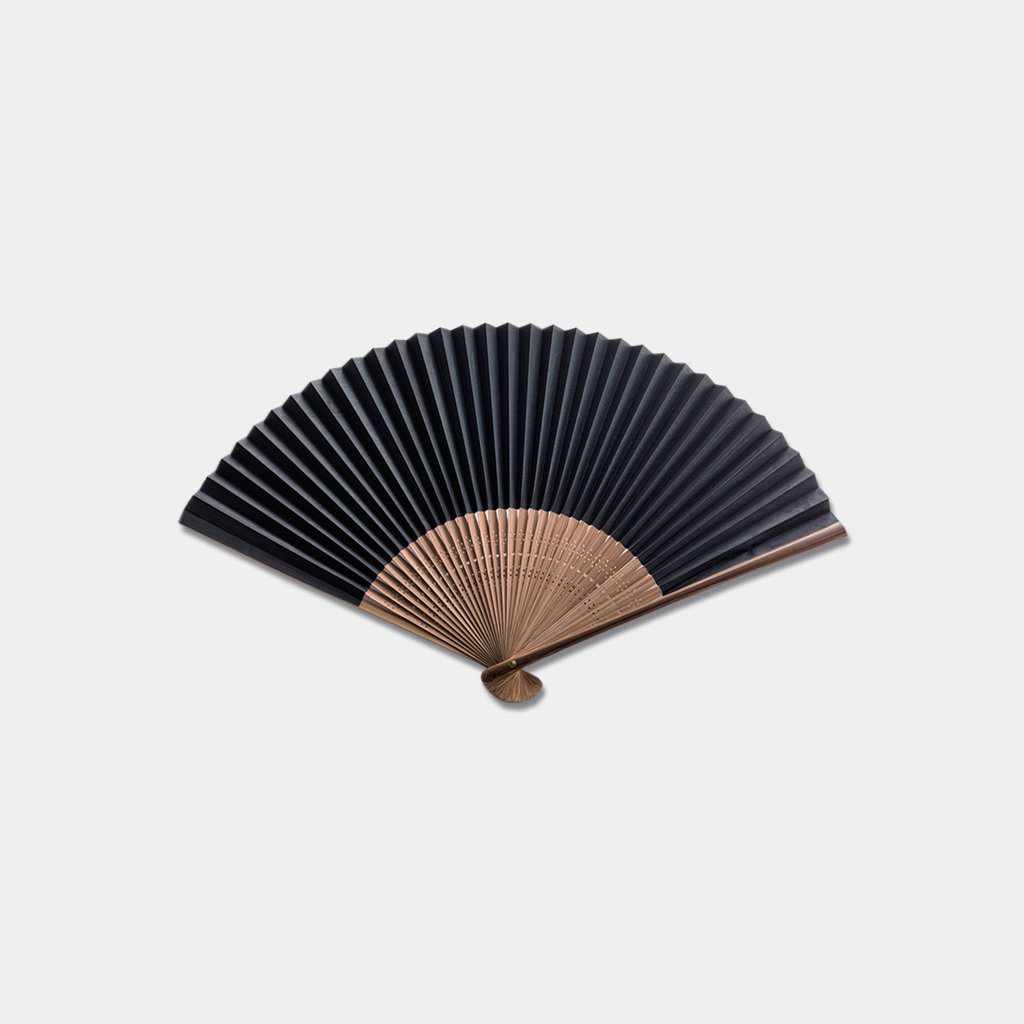 扇面、扇骨、組み立てまで職人の手作りにこだわり、膠(にかわ)と礬水(どうさ)で仕立てる伝統的な技法と、モダンなデザインを組み合わせた扇子です。