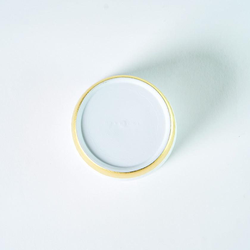 白色の七宝柄のカップの下半分に金沢箔を施しています。