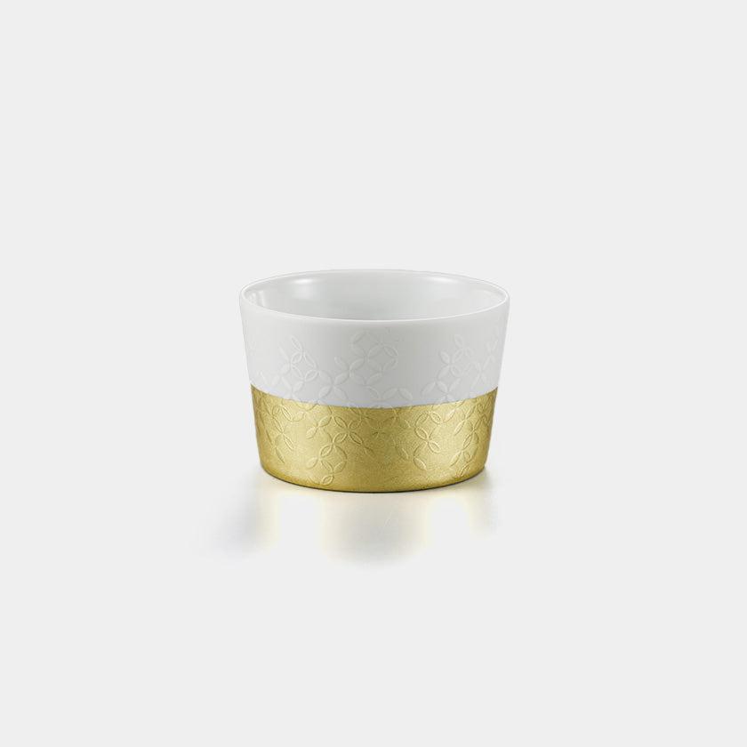 マットな白×艶のある白×金沢箔のゴールドが融合した美しいフリーカップです。デザインは着物の小紋柄がモチーフ。麻の葉模様、七宝、市松の3種類から選べます。小鉢やフルーツボウル、コーヒーカップや酒器、さらにそばちょこなど多様な使い方ができるのが魅力。ペアセットや3種セットにしてプレゼントするのもおすすめですよ。