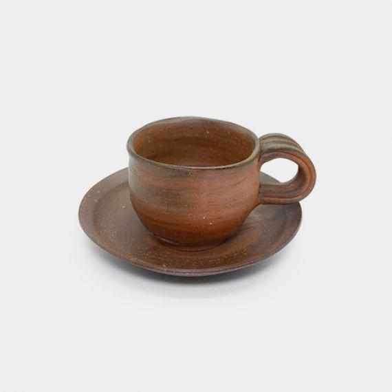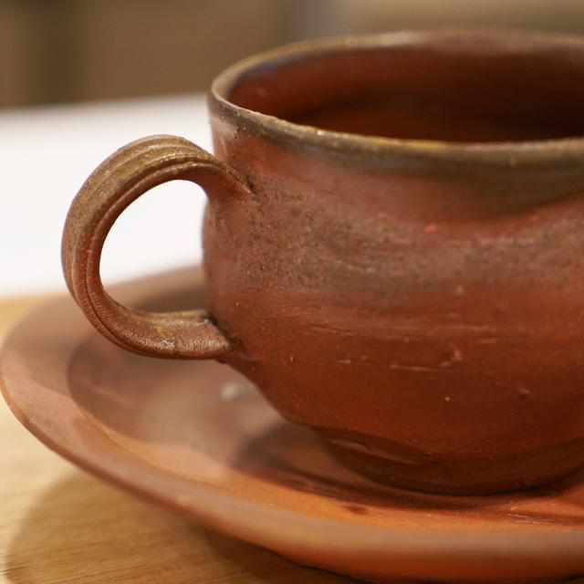 岡山県備前市で作られる陶器、備前焼のコーヒーカップ&ソーサー。備前焼は日本六古窯のひとつで、千年の歴史を持つ伝統工芸品です。