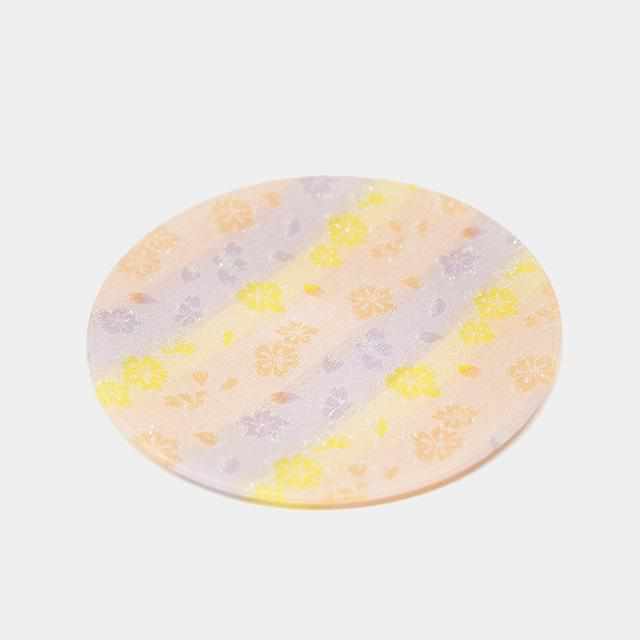 西陣織工業組合に認定された西陣織に特殊なガラスコーティングを施したお皿で、ピンクをベースにした、日本を代表する桜の大皿です。