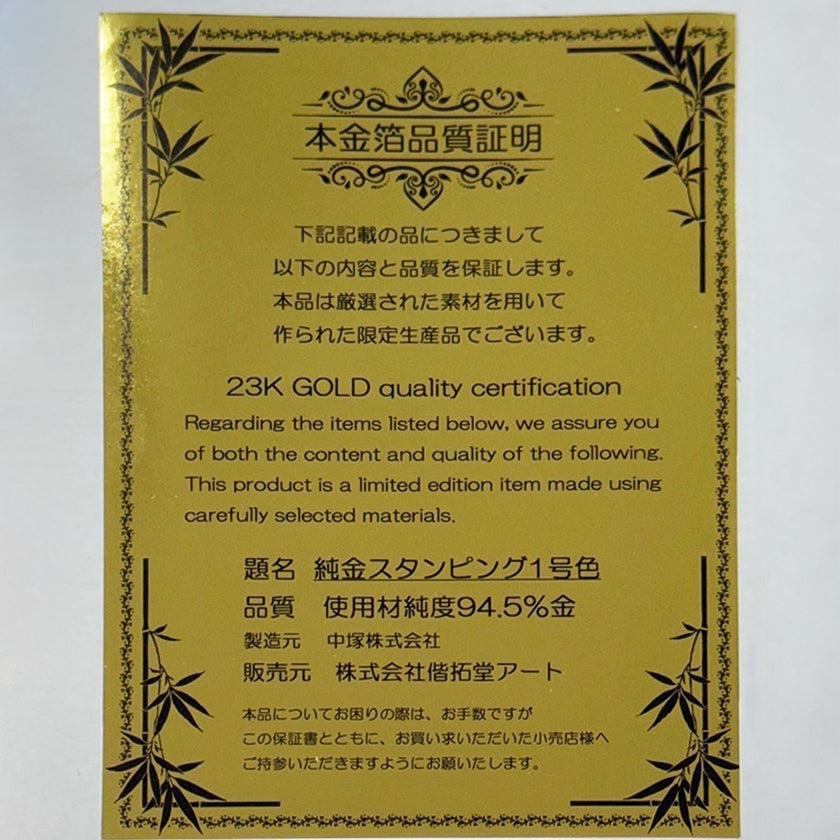 本金箔とアルミ銀箔で箔押しを施し、さらに繊細な手彩を加えて仕上げました。
