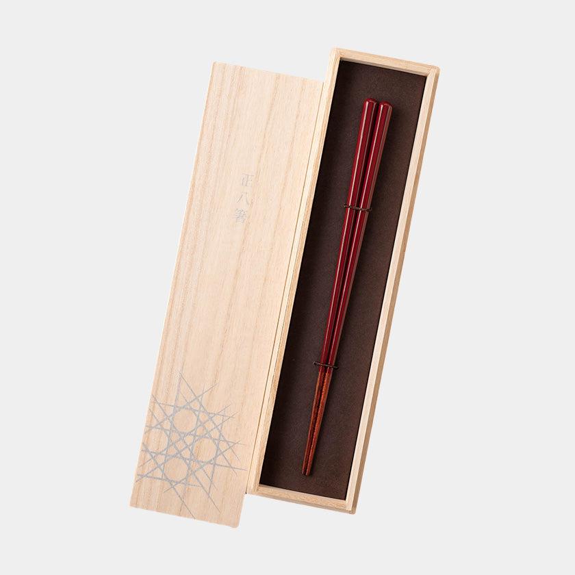 「美しく・握りやすく・つかみやすい」の3つが揃った箸。頭部から箸先まで限りなく正八角形にこだわり、上質な持ち心地を求めた逸品です。日本を代表する漆器産地の越前塗を施していて、吸い付くように手に馴染む質感が特徴。2種のカラーが異なる素材から選べるほか、夫婦箸のセットとしても購入が可能です。