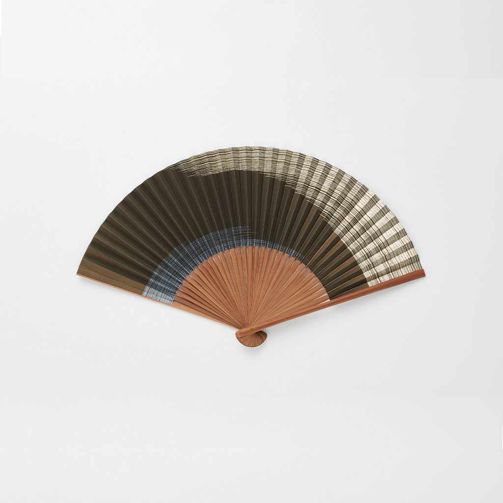 薄い和紙を三層に重ねて扇面に貼り付けた、男性ものの京扇子です。