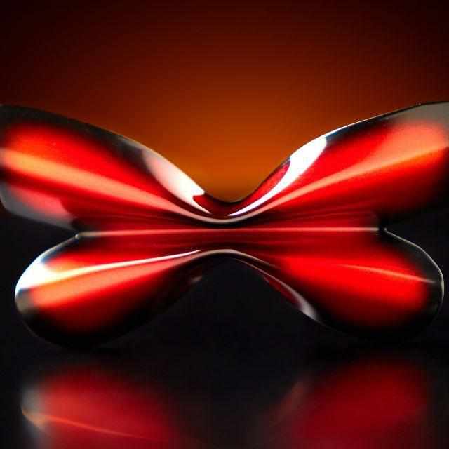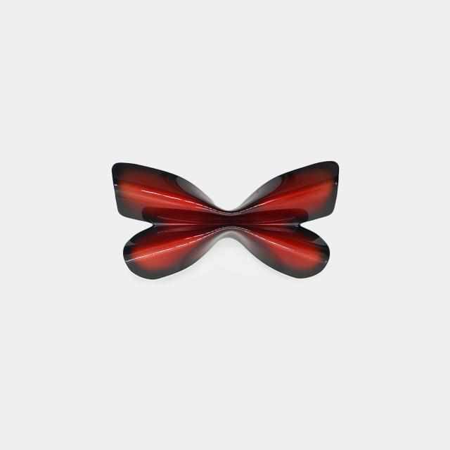 モチーフは主に中南米に生息し、翅色の変異に富んだ色鮮やかなミイロタテハの中でも、特に鮮烈な赤が特徴的な「アグリアス・クラウディナ」という蝶です。