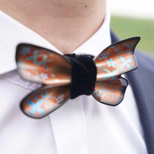 世界で唯一の金属製のリバーシブル蝶ネクタイです。