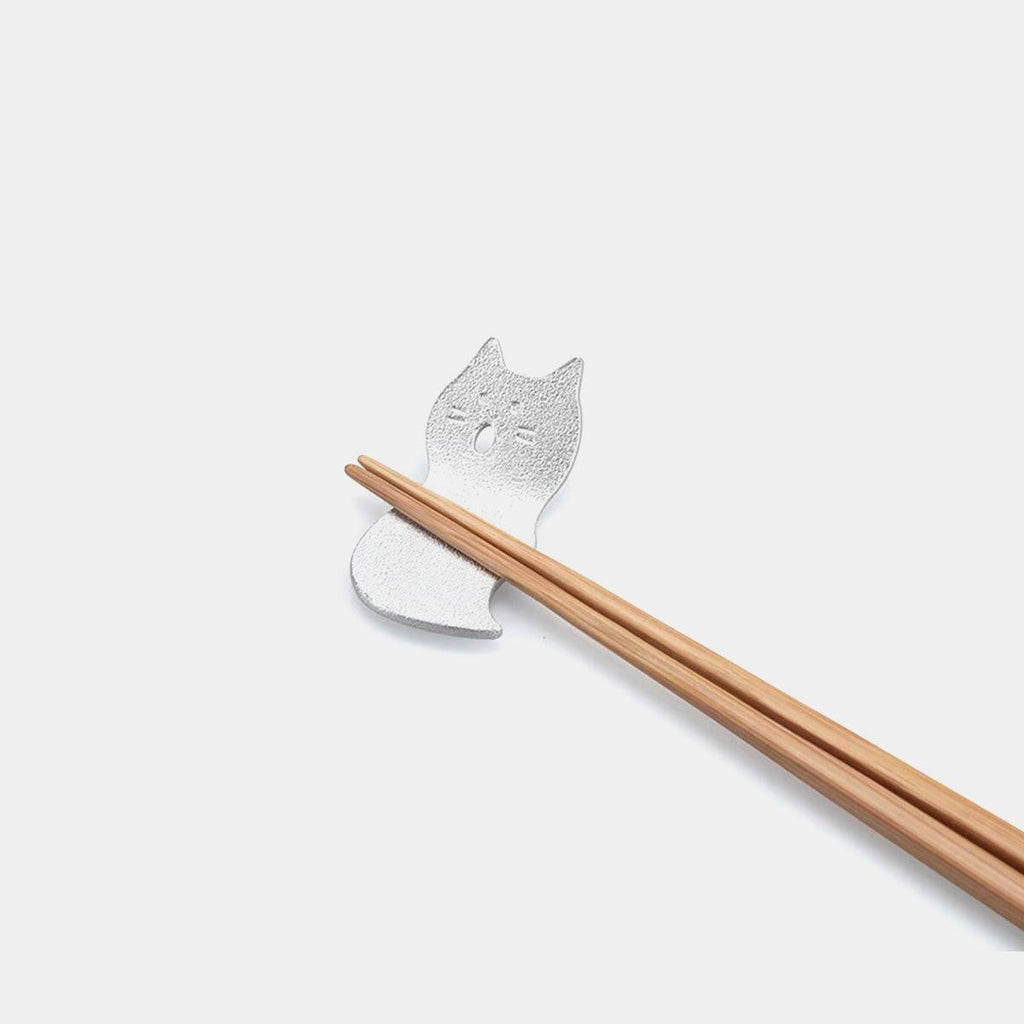 100%錫でできた箸置きは柔らかいので、軽く曲げて形を変えることができます。箸が安定するよう、お好みで曲げてお使いください。