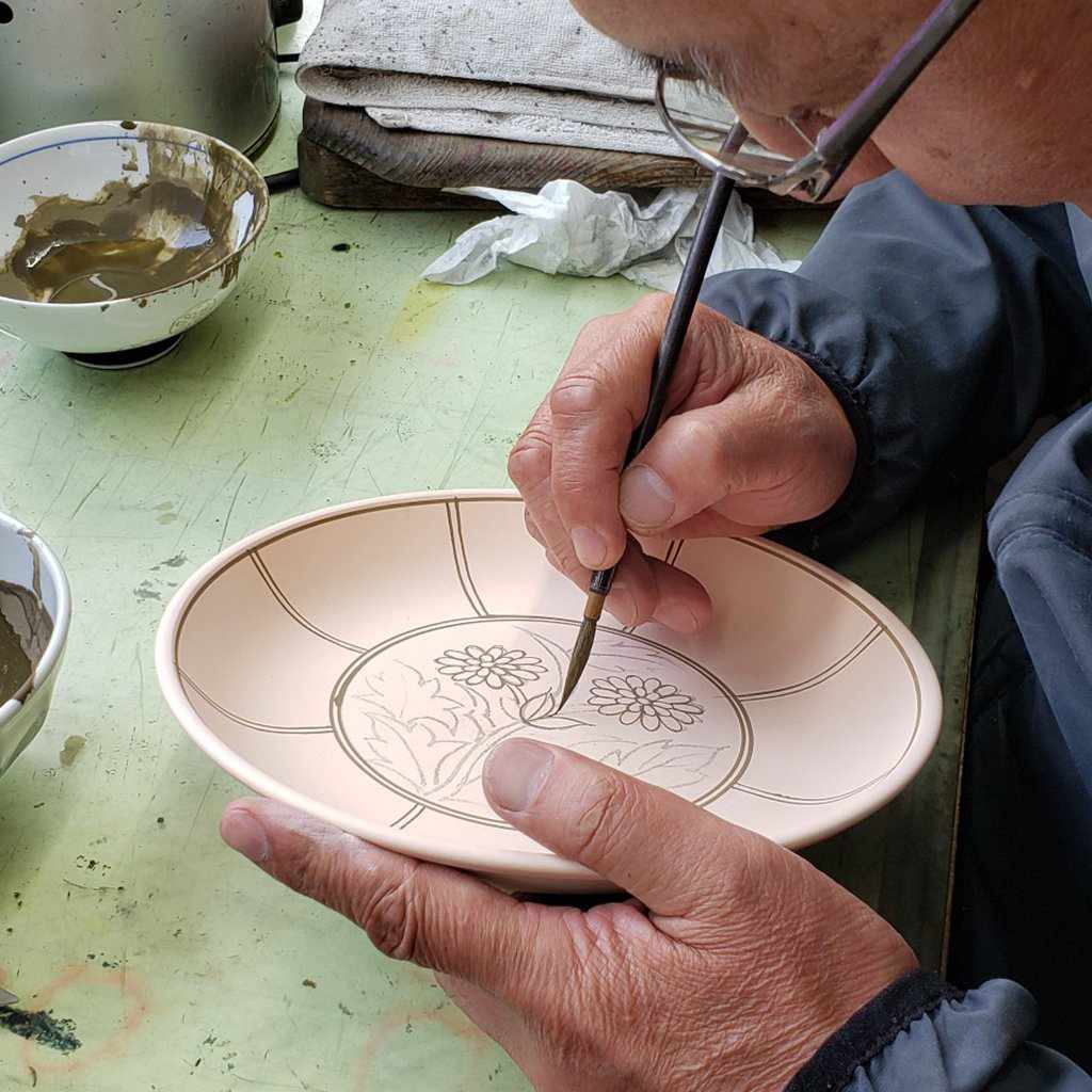 その古伊万里を、伝統的な手法を守りながら色や柄でアレンジを加えて現代風に作られたのがこのお皿。波佐見焼の窯元、林九郎窯(りんくろうがま)が手がけるオリジナルの商品です。